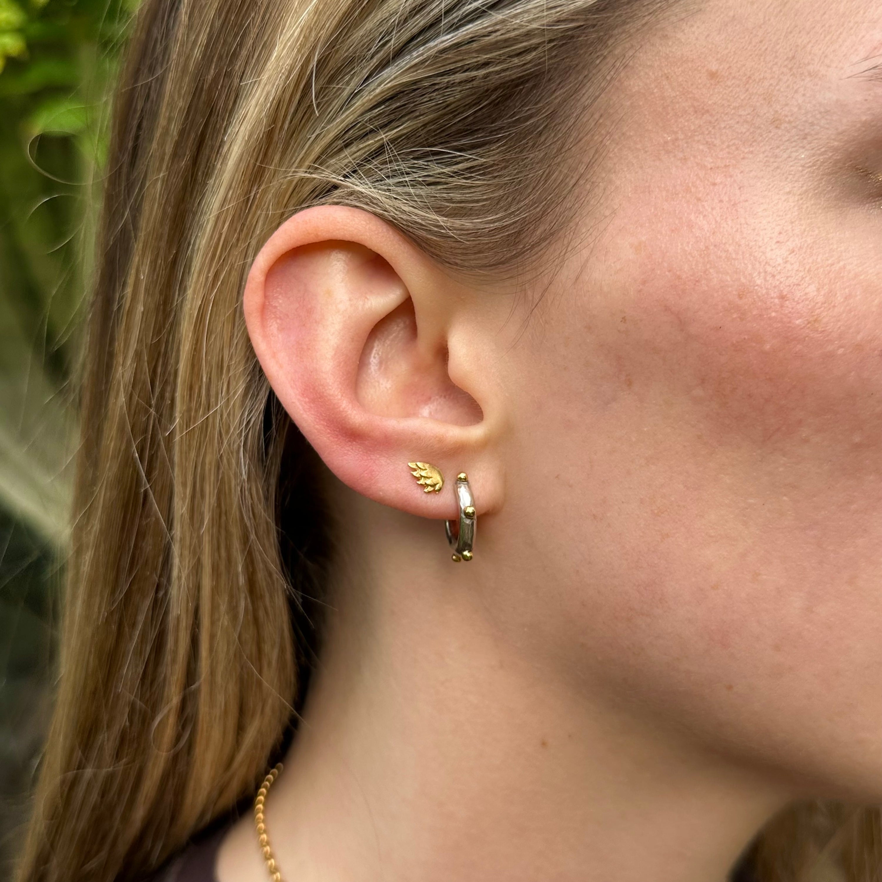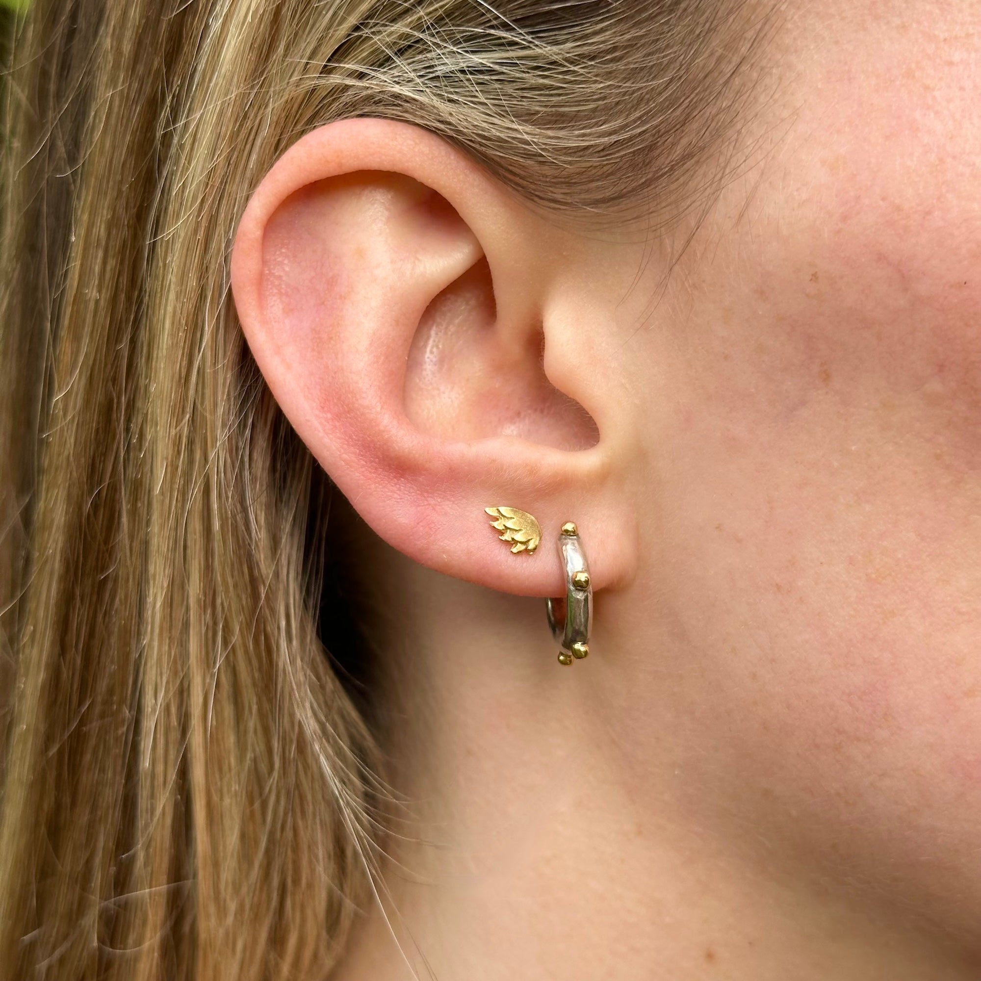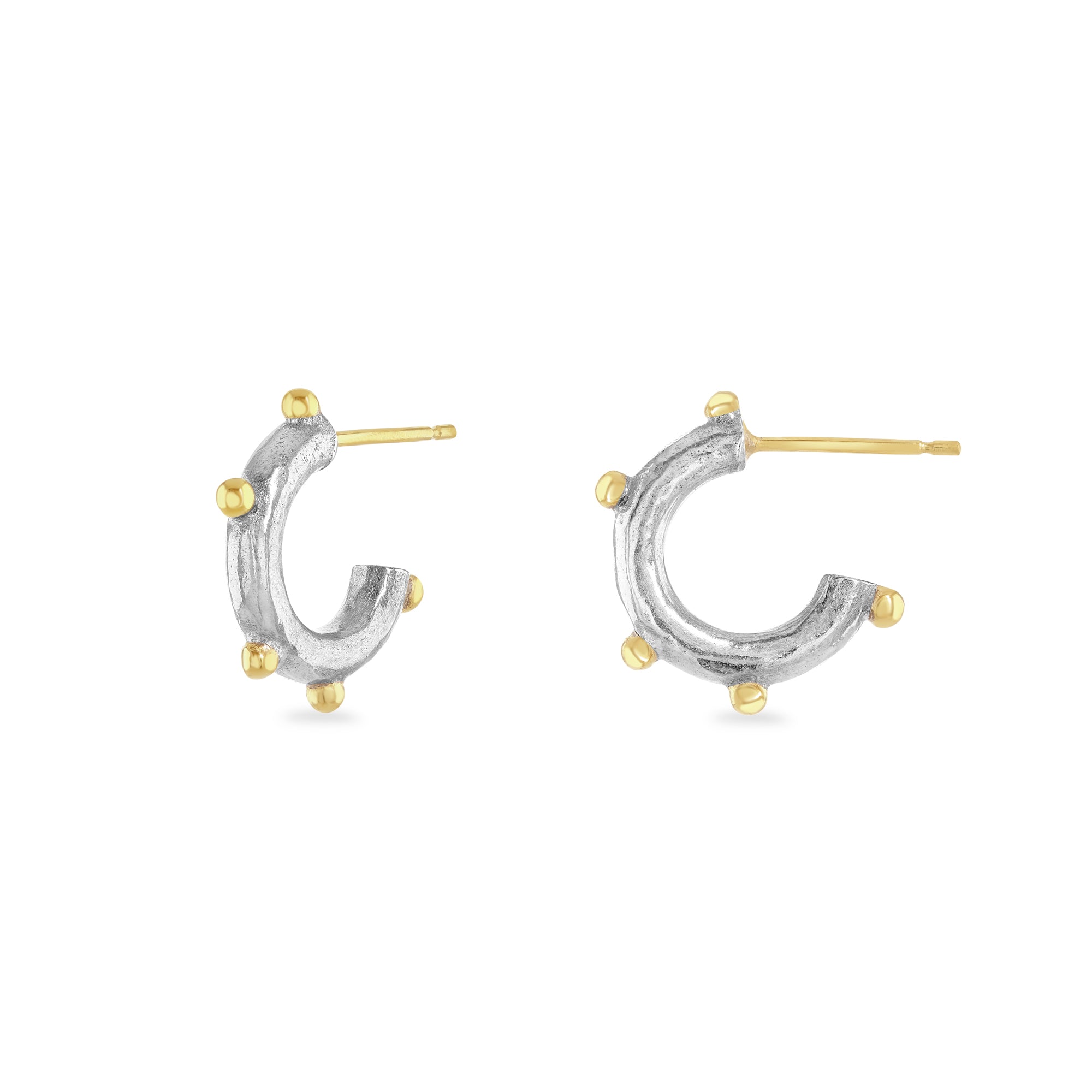 These small hoops are made in sterling silver with gold plated detail on the bobbles, perfect for everyday wear but still symbolising modern elegance and playful charm! Also available in 18ct gold & diamond.