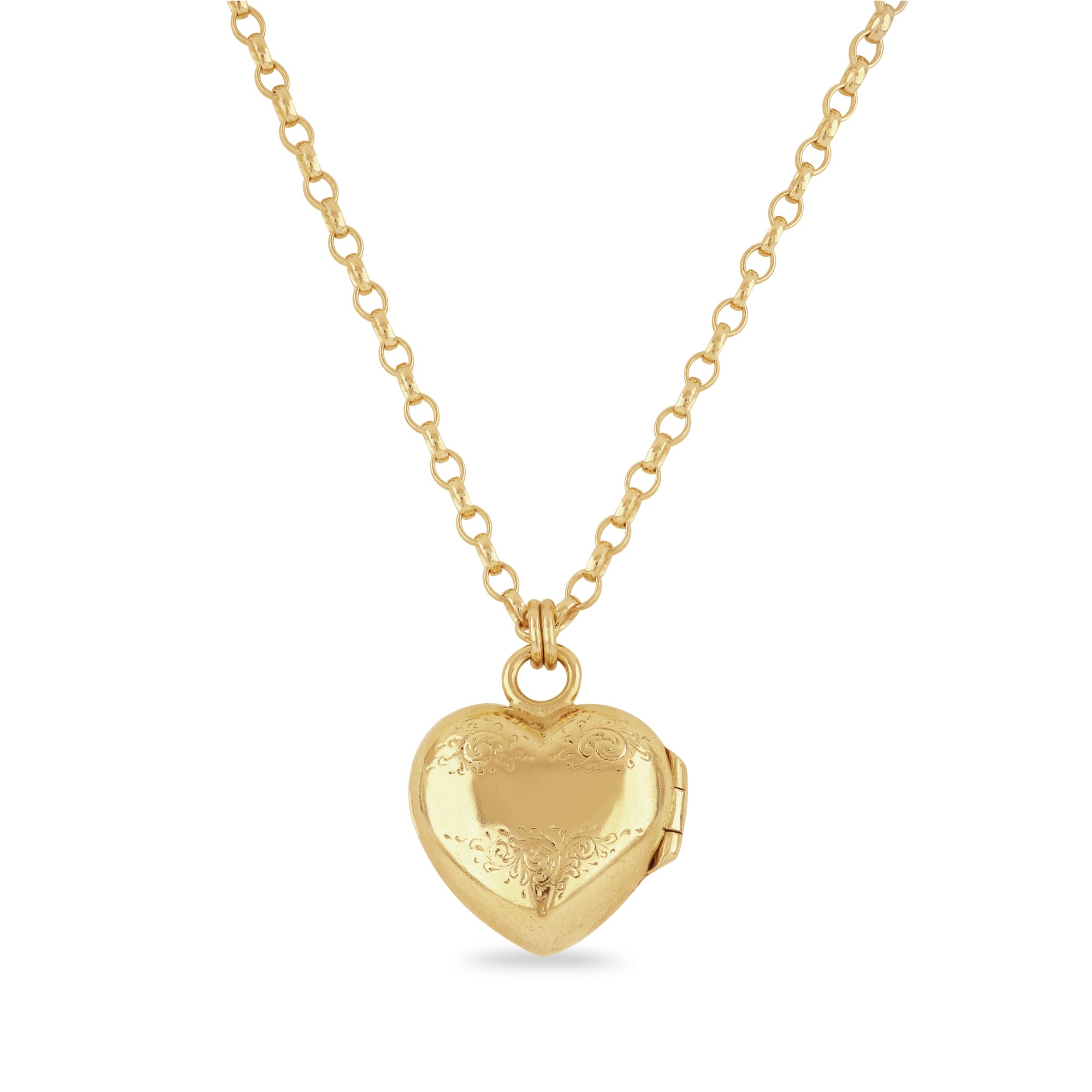 The locket has a fabulous chunky feel and weight to it measuring 20x20x10mm and it is made in 18ct yellow gold. It hangs from an 18" fine 2.5mm wide belcher chain with a winged heart T bar clasp and safety chain.