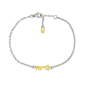 This sweet bracelet is made in sterling silver with gold plate detail, symbolically, the key represents access, discovery, and new opportunities—serving as a reminder of empowerment, curiosity, and the freedom to open new doors in life.